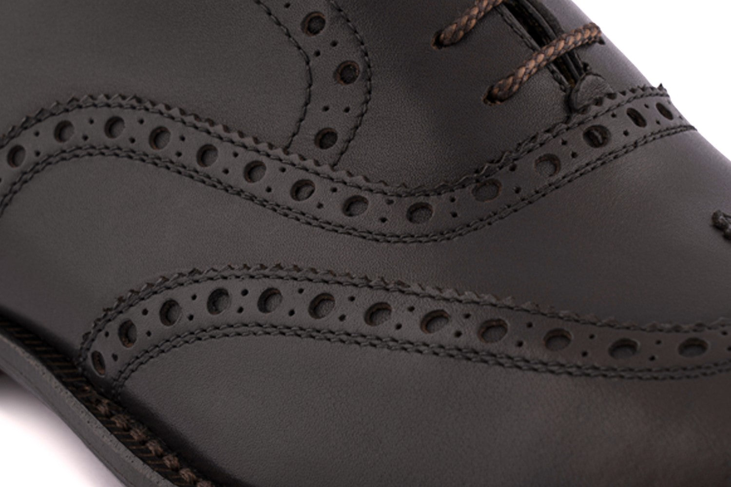 This Oxford shoe is crafted from full-grain calf leather and enriched with elegant brogue detailing.