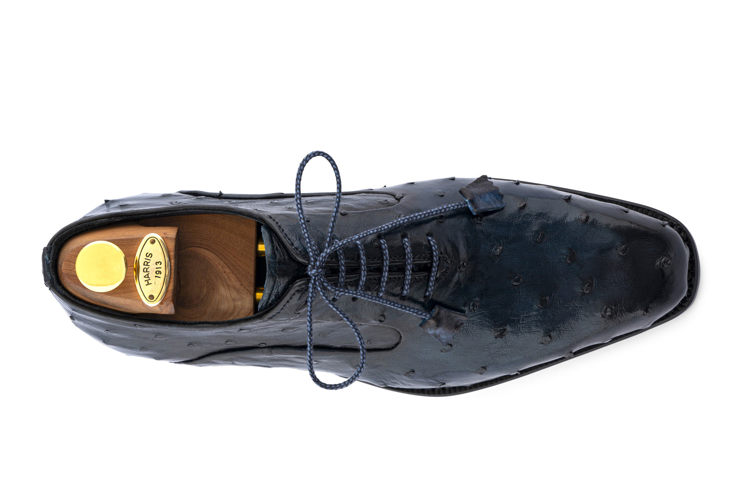 Made from genuine hand-antiqued ostrich leather, this model embodies all the Harris craftsmanship. Shaded details, Blake Rapid manufacturing and leather sole with non-slip rubber insert for a shoe with a strong and sophisticated style.