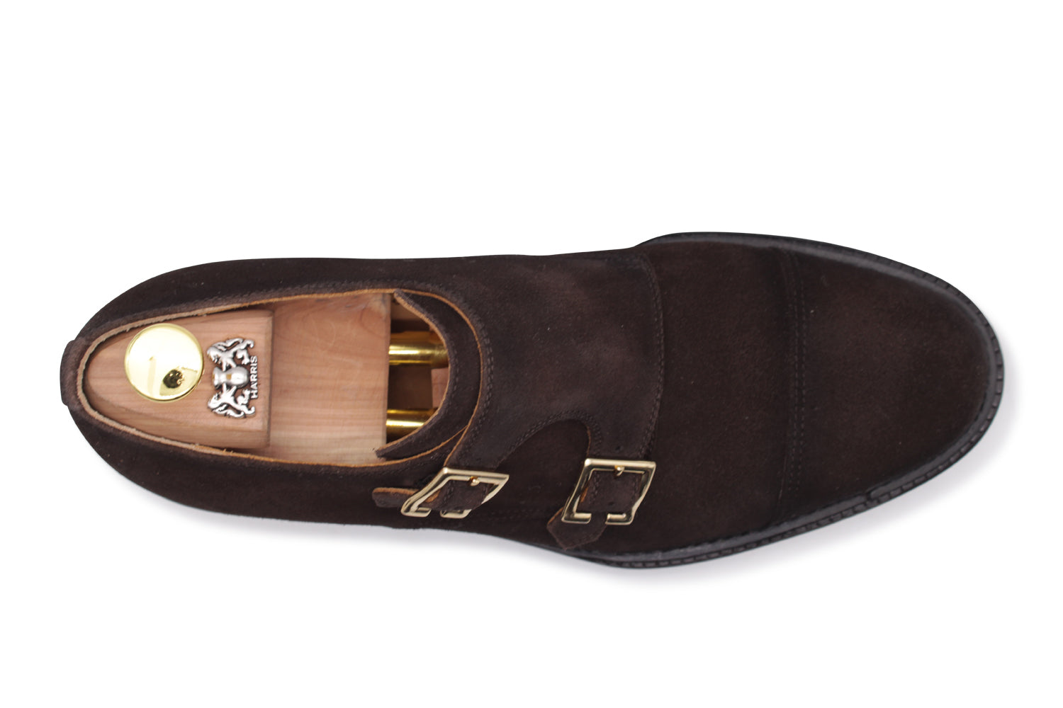 Questa doppia fibbia in pelle scamosciata color testa di moro, con sfumature scure realizzate a mano, esprime un’eleganza decisa e contemporanea. Le fibbie quadrate in finitura oro completano il design, mentre la suola in gomma con guardolo cucito assicura comfort e qualità artigianale Made in Italy.