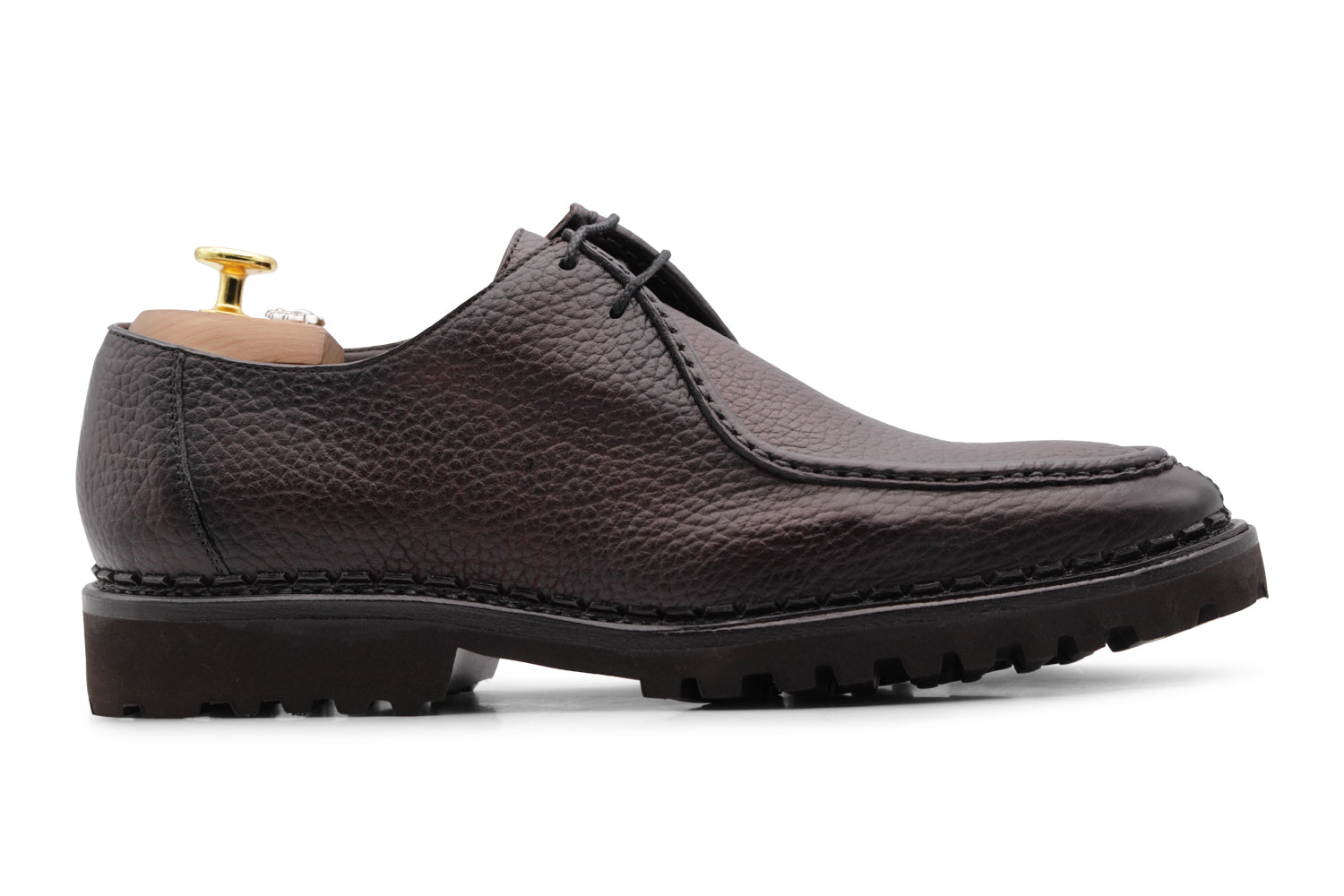 Stringata in suede color verde smeraldo con sfumature scure eseguite a mano. La suola Harris Ripple con inserto arancio e la costruzione Blake Rapid definiscono un modello iconico, energico e distintivo.