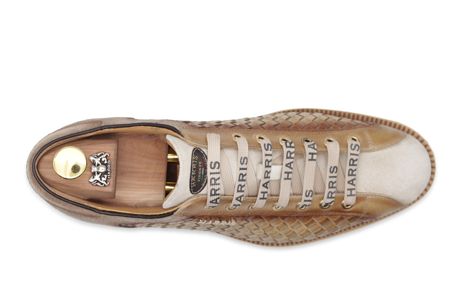 Suede intrecciato beige e Monogram Harris color taupe. Arricchita da dettagli sfumati a mano e accessori oro, questa sneaker alta gamma è montata su suola runner con metodo Blake Rapid.