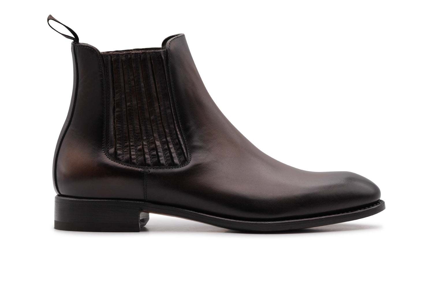 Un classique intemporel réinterprété par Harris : cuir de veau pleine fleur lisse, élastique latéral, trépointe surpiquée et semelle en caoutchouc. La construction Blake Rapid assure une combinaison parfaite de résistance et de flexibilité.