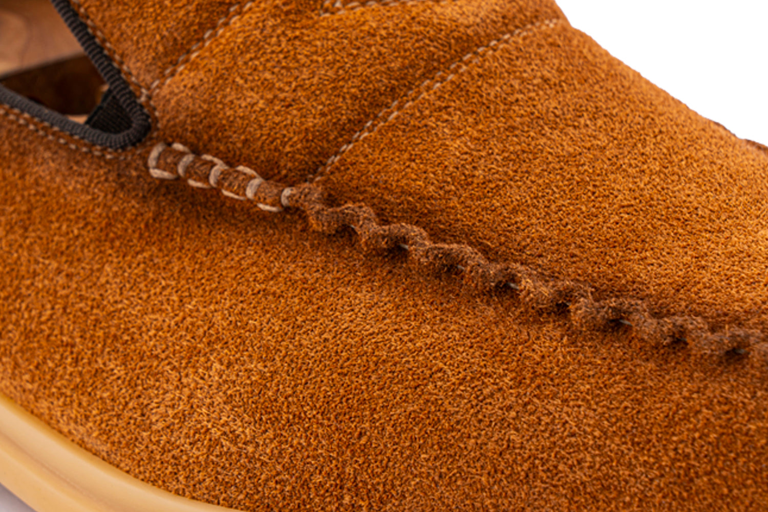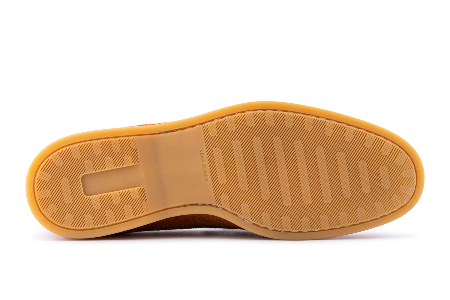 Una tonalità decisa in pelle scamosciata color mattone, rifinita con cuciture a mano e passante imbottito. La suola in gomma color miele assicura una camminata ammortizzata, garantita dalla qualità Blake Rapid.