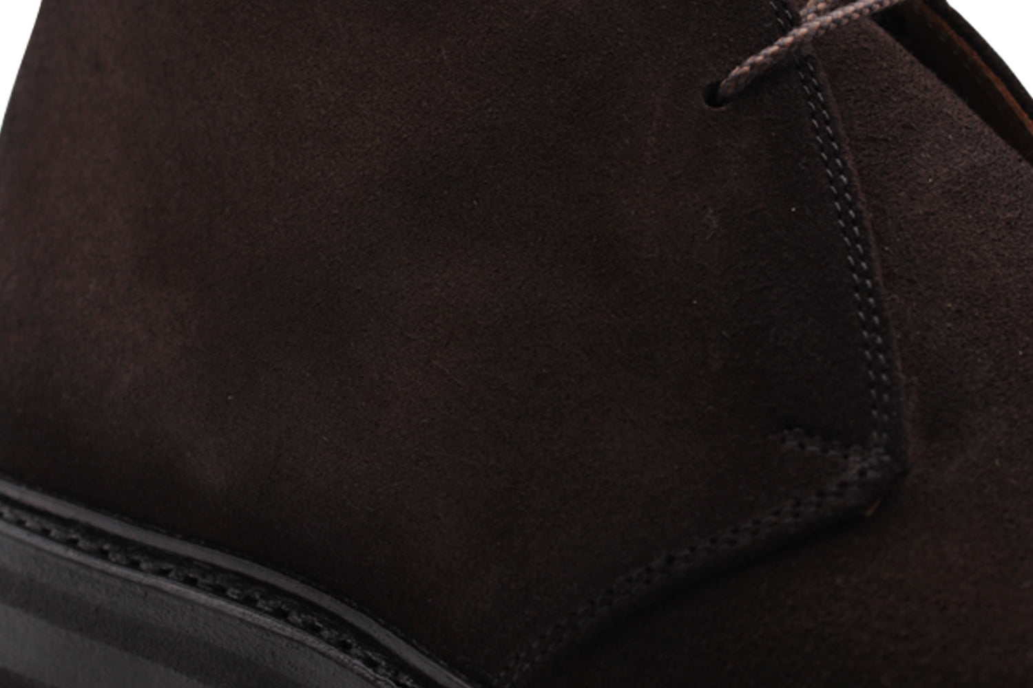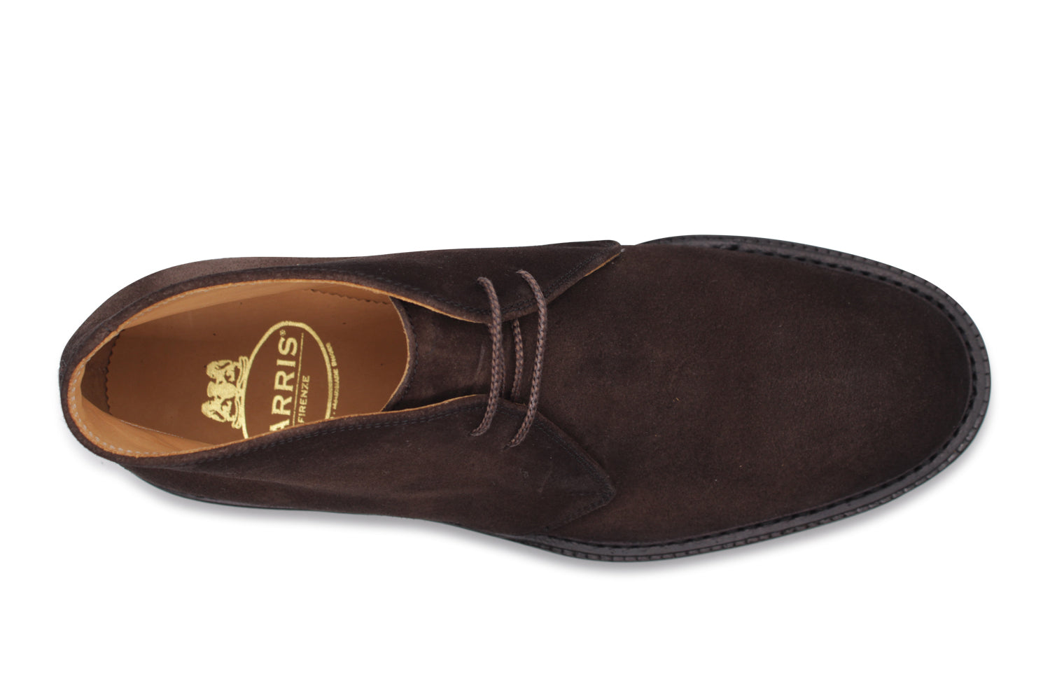 Realizzato in pelle di suede testa di moro con sfumature scure dipinte a mano. La suola in gomma Dainite e il guardolo cucito conferiscono robustezza, mentre la lavorazione Blake Rapid firma l’autenticità artigianale Harris.