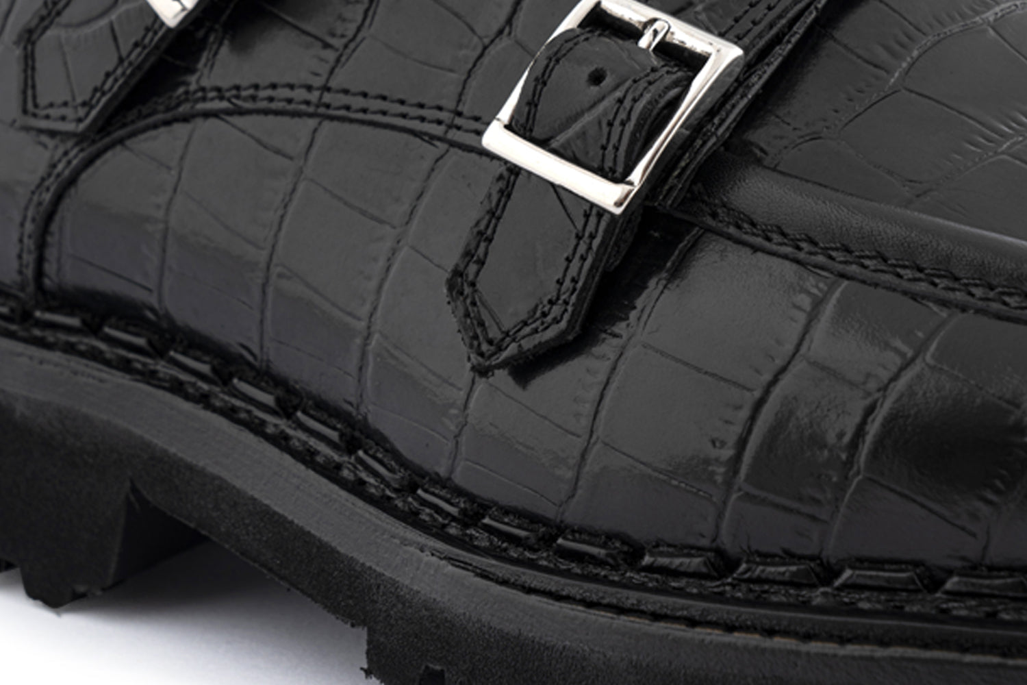 Questa doppia fibbia in pelle pieno fiore stampata effetto coccodrillo che combina carattere e raffinatezza. Le sfumature della pelle e la cucitura sul bordo raccontano la cura artigianale di ogni dettaglio mentre la suola in gomma carrarmato conferisce solidità e comfort. Una calzatura dal fascino deciso, pensata per chi cerca eleganza senza rinunciare alla personalità.