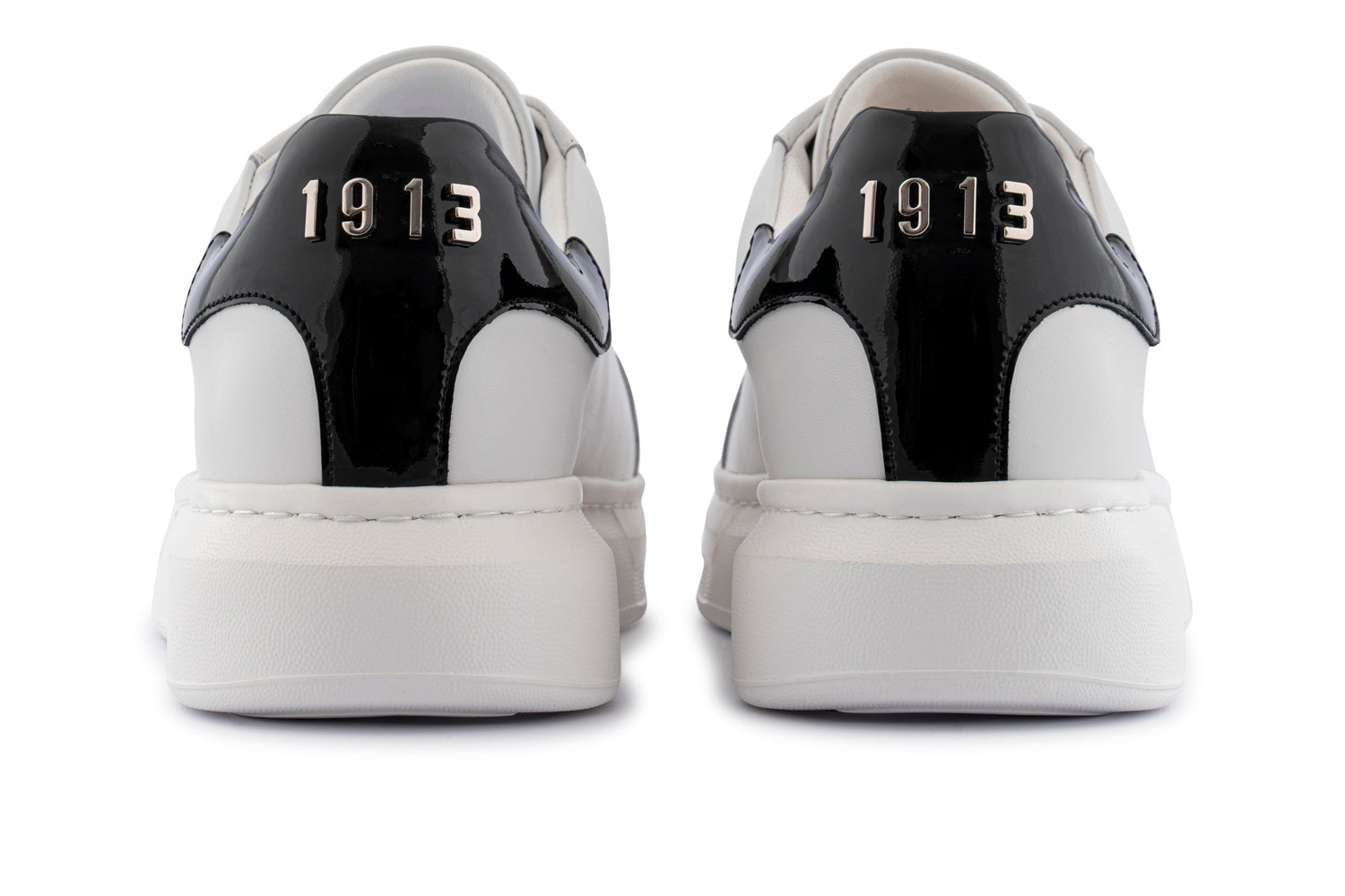 Black and white in perfect contrast. Minimal and sophisticated. Smooth white leather with black patent leather details and Strobel craftsmanship ensures comfort and style.