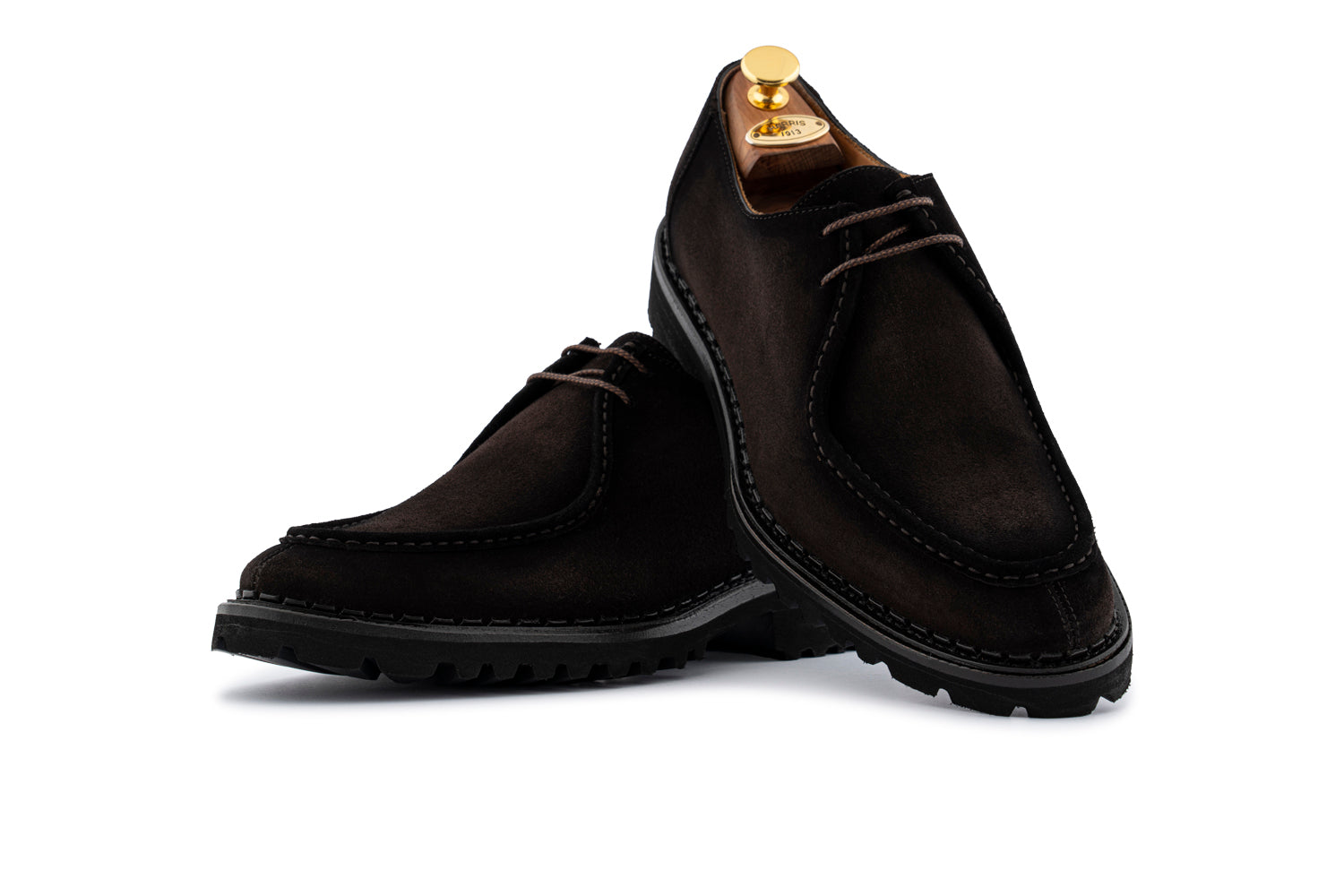 Una stringata dal fascino intramontabile, realizzata in pelle scamosciata di vitello sfumata a mano nella tonalità testa di moro che ne valorizza la profondità e l’eleganza naturale. La cucitura a mano testimonia l’attenzione ai dettagli e la tradizione artigianale mentre la lavorazione Blake Rapid assicura resistenza e flessibilità. La suola in gomma carrarmato completa il modello con un tocco deciso e contemporaneo, garantendo comfort e stabilità in ogni occasione.
